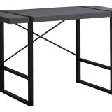 This stylish industrial-inspired computer desk could easily pass for an accent table. It features a spacious, thick-panel desktop finished in a grey laminate and sturdy metal legs in a contrasting black finish. The metallic components are put on full display with rectangular legs integrated into the desktop and an exposed support bar in an attractive X shape on the back of the desk. If you use a living room or bedroom as a home office and are looking for a streamlined alternative to traditional desks, this laptop or writing table gets the job done.
