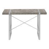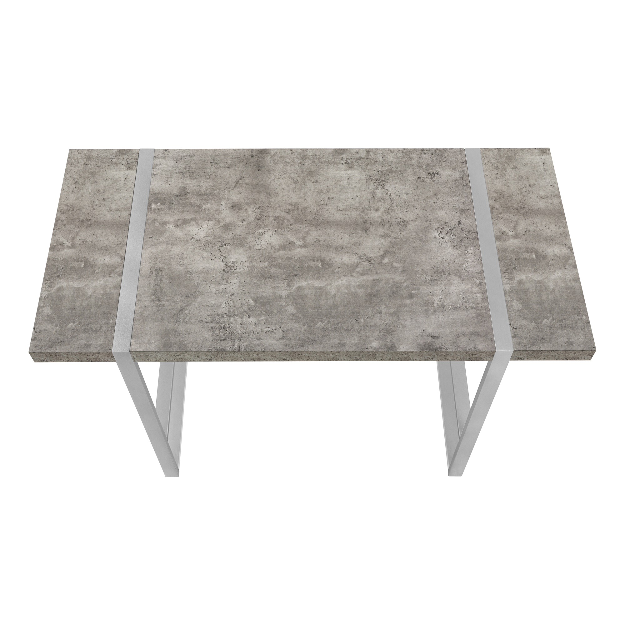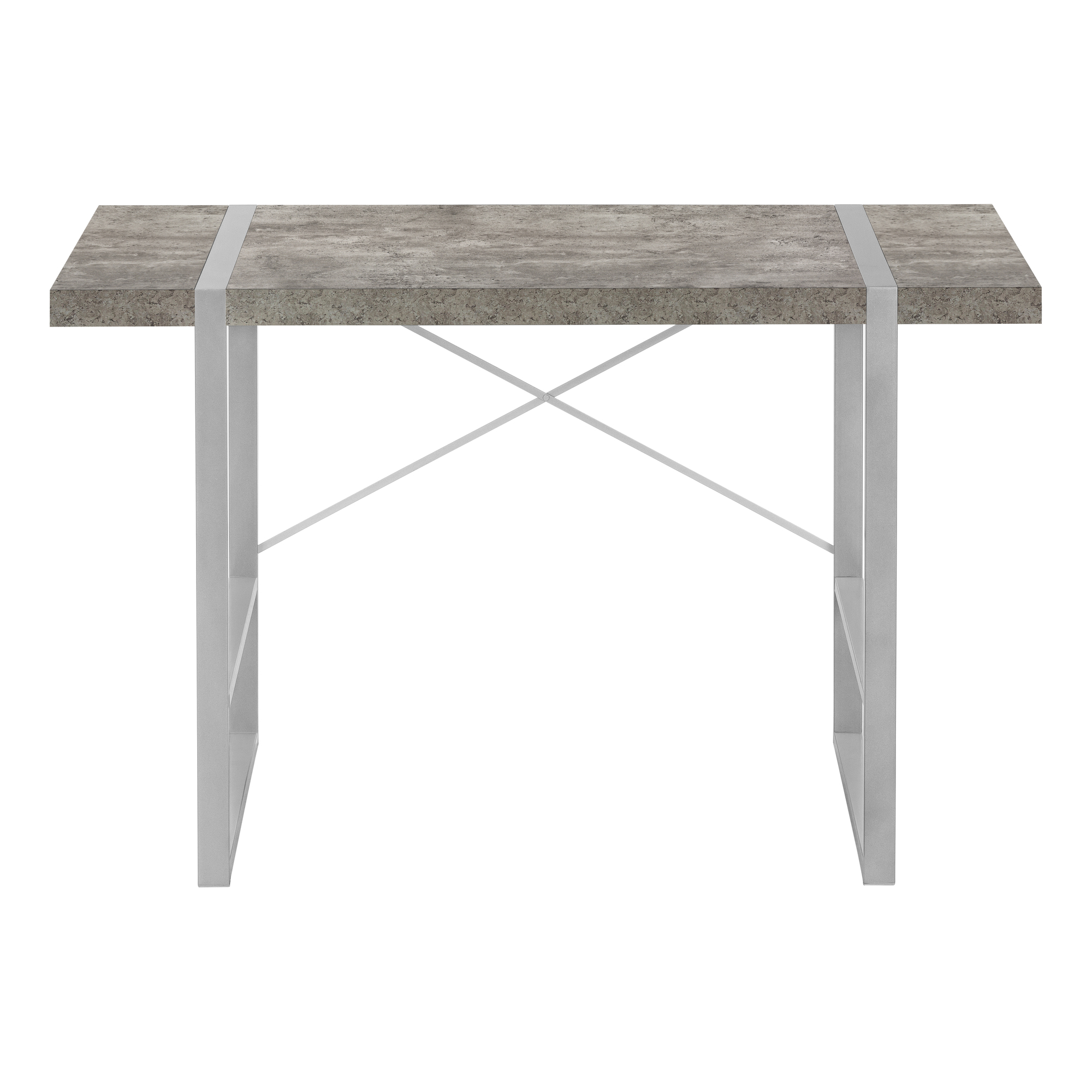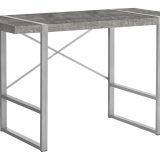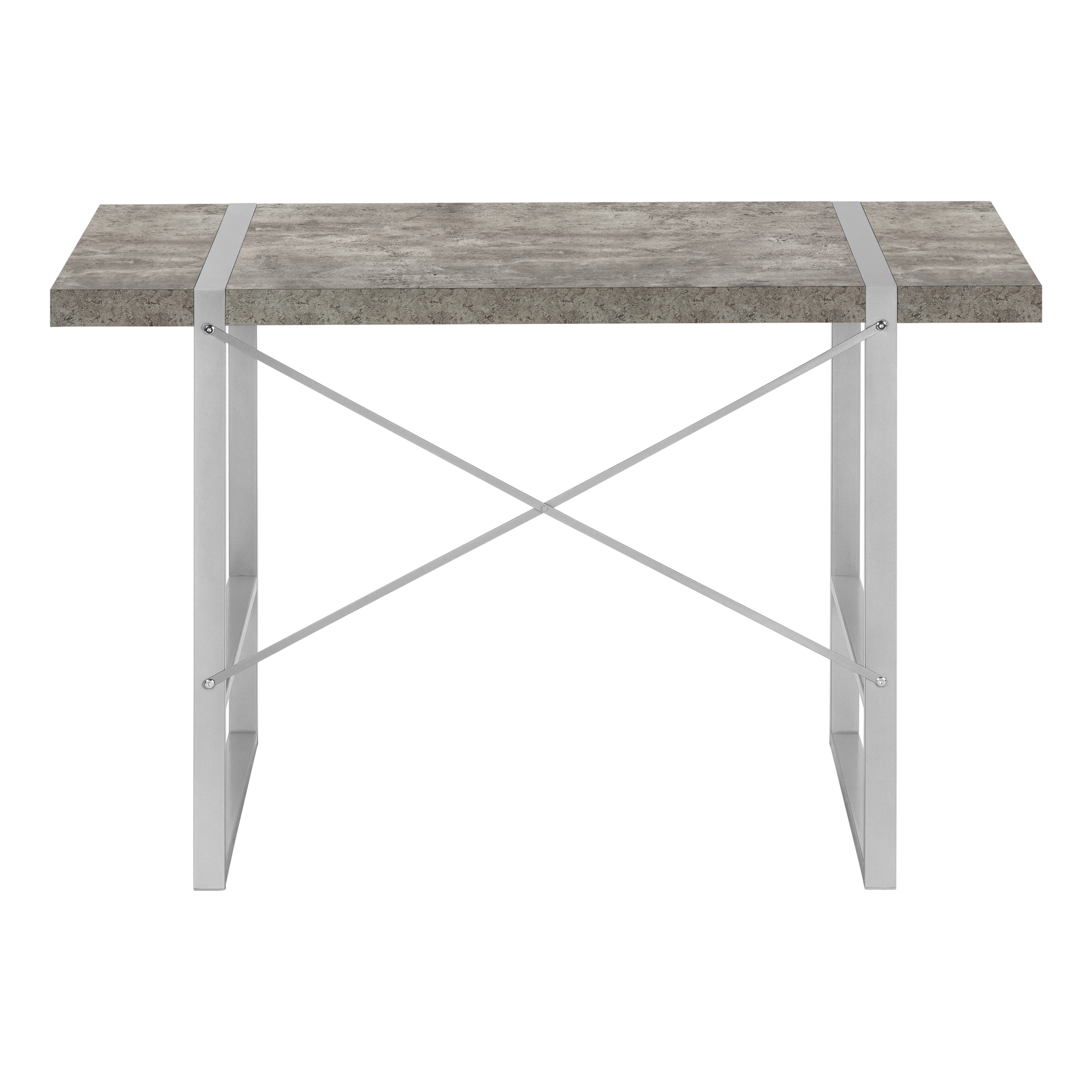 This stylish industrial-inspired computer desk could easily pass for an accent table. It features a spacious, thick-panel desktop finished in a grey concrete-look laminate and sturdy metal legs in a coordinating silver finish. The metallic components are put on full display with rectangular legs integrated into the desktop and an exposed support bar in an attractive X shape on the back of the desk. If you use a living room or bedroom as a home office and are looking for a streamlined alternative to traditional desks, this laptop or writing table gets the job done.