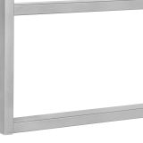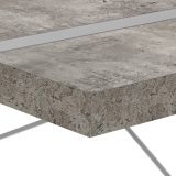 Robust metal legs in a silver finish are incorporated into the desktop for an interesting visual effect