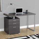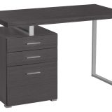 Introducing the ultimate home office essential – this 48″L computer desk with a wood-look grey laminate finish and reversible configuration. This sleek and fashionable style desk is durably designed with a sturdy U-shaped grey metal leg, a spacious and easy to clean top and finished on all sides, perfect for any modern and functional workspace. With the flexibility of a left or right setup to fit your needs, this space saving desk is ideal whether you use it for study, writing, or working on your laptop. Stay organized with closed storage drawers and a convenient file drawer with hanging bars for all your essentials. This contemporary desk is easy to assemble with illustrated instructions included and comes with a 5 year limited warranty for peace of mind.