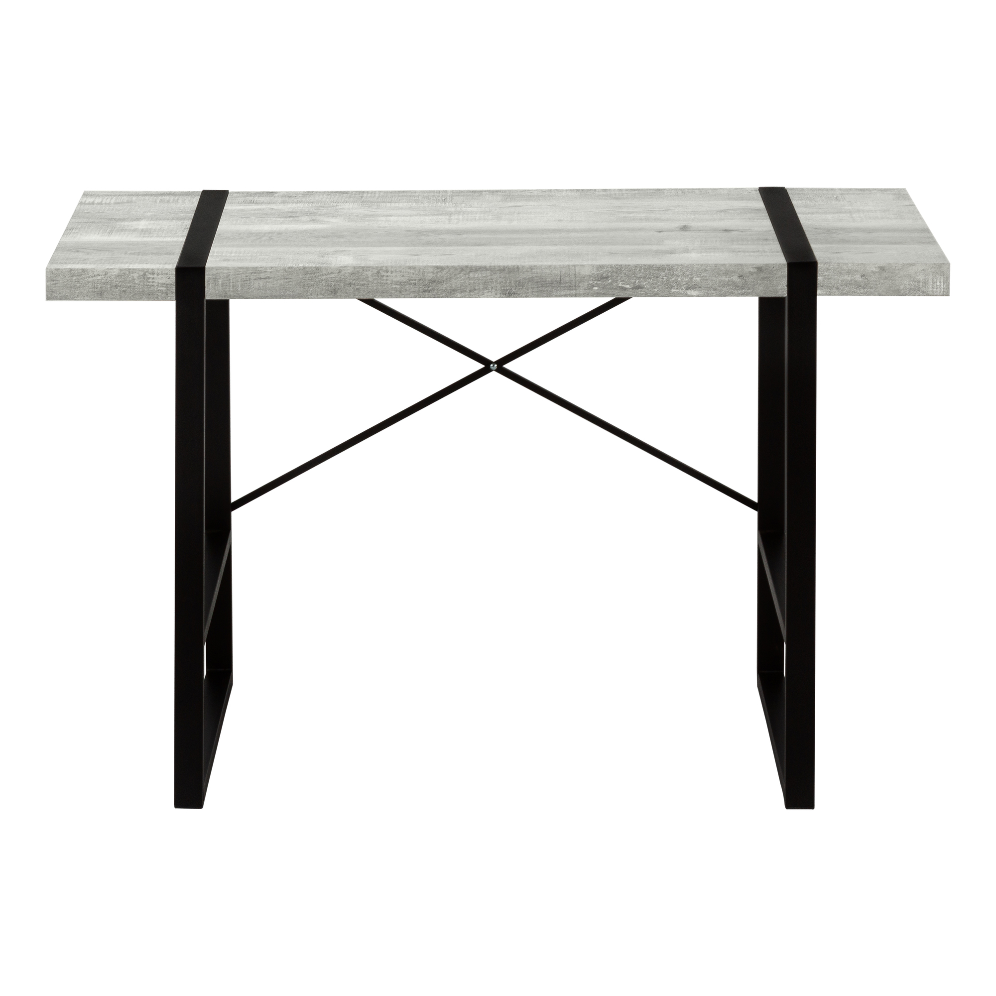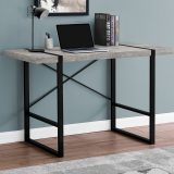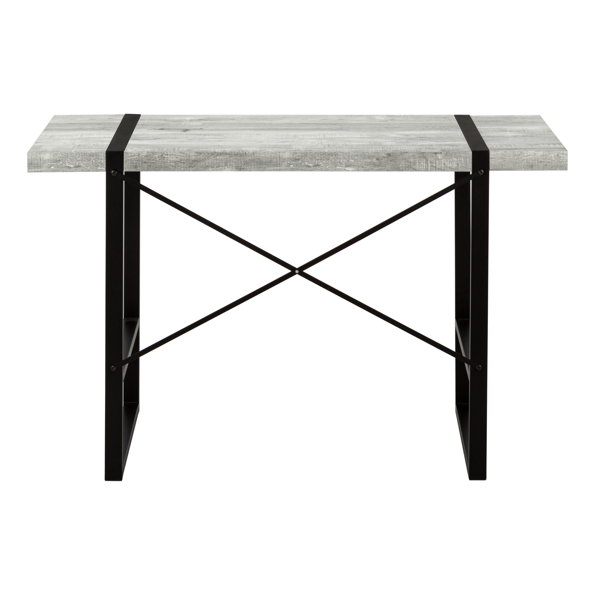 This stylish industrial-inspired computer desk could easily pass for an accent table. It features a spacious, thick-panel desktop finished in a grey reclaimed wood-look laminate and sturdy metal legs in a contrasting black finish. The metallic components are put on full display with rectangular legs integrated into the desktop and an exposed support bar in an attractive X shape on the back of the desk. If you use a living room or bedroom as a home office and are looking for a streamlined alternative to traditional desks, this laptop or writing table gets the job done.