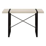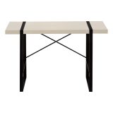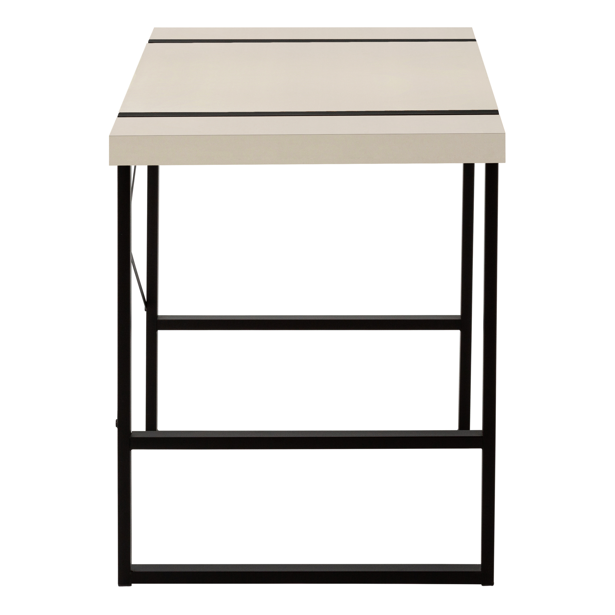 This stylish industrial-inspired computer desk could easily pass for an accent table. It features a spacious, thick-panel desktop finished in a modern taupe laminate and sturdy metal legs in a contrasting black finish. The metallic components are put on full display with rectangular legs integrated into the desktop and an exposed support bar in an attractive X shape on the back of the desk. If you use a living room or bedroom as a home office and are looking for a streamlined alternative to traditional desks, this laptop or writing table gets the job done.