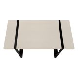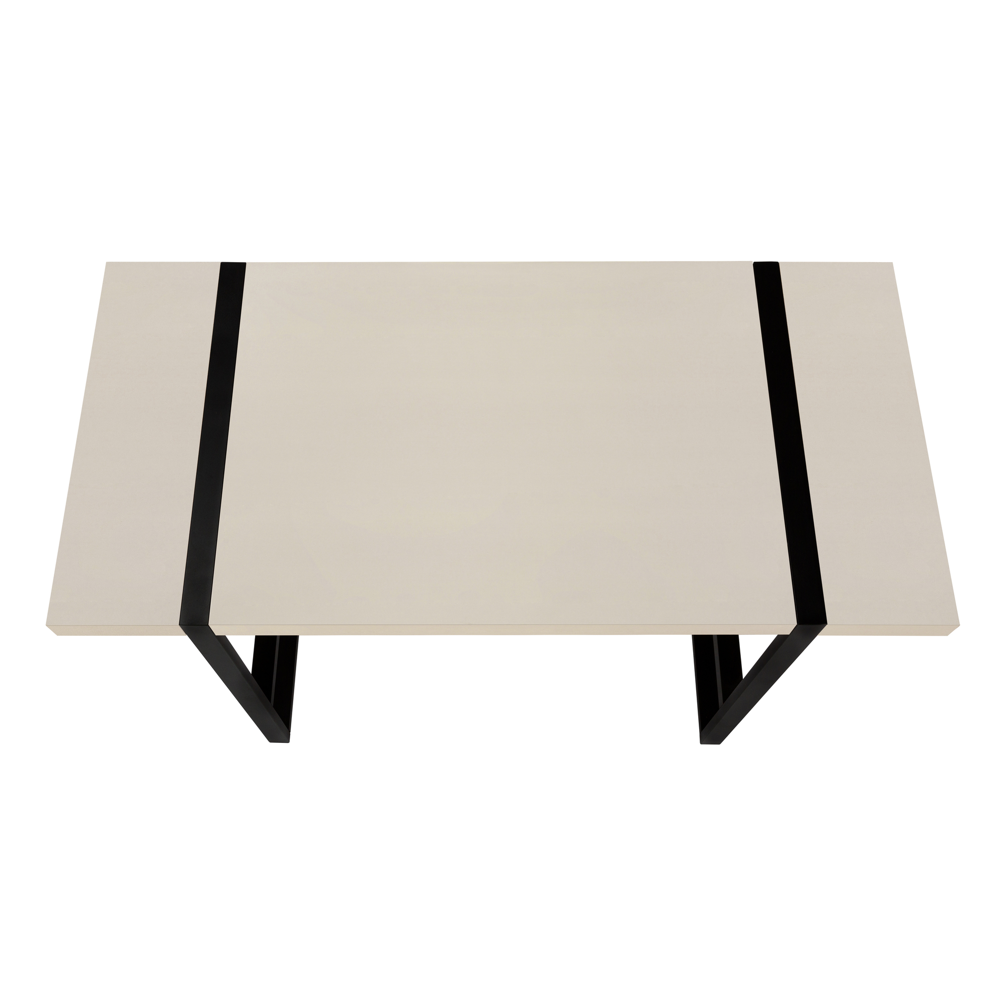 Robust metal legs in a black finish are incorporated into the desktop for an interesting visual effect