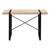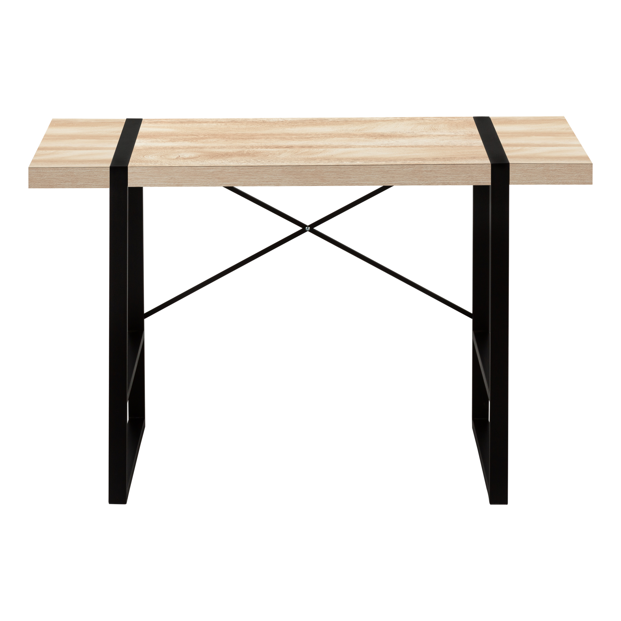 This stylish industrial-inspired computer desk could easily pass for an accent table. It features a spacious, thick-panel desktop finished in a natural wood-look laminate and sturdy metal legs in a contrasting black finish. The metallic components are put on full display with rectangular legs integrated into the desktop and an exposed support bar in an attractive X shape on the back of the desk. If you use a living room or bedroom as a home office and are looking for a streamlined alternative to traditional desks, this laptop or writing table gets the job done.