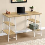 Make your computer desk work as hard as you do. This desk delivers style and functionality from top to bottom, starting with its thick and spacious desktop in a natural wood-look finish. Sawhorse-style legs in white metal are put to work as supports for 4 open shelves that can be used to display books, small storage boxes, or other items. The unique, compact design of this industrial-style writing desk maximizes space and storage potential so that you can maximize productivity.