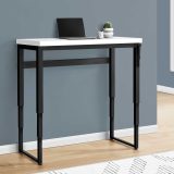Keeping yourself productive and healthy doesn’t have to be challenging, just add this height adjustable desk to your home office! Featuring a unique design in its category and a smooth white laminate finish, this standing computer desk is both contemporary in design and functional. The 2 inch squared black metal legs offer a solid base and lots of space for your office chair. The modern 2 inch thick desktop adds style while being the perfect place for your laptop/tablet, a lamp, notebooks or any supplies you need to get the job done!