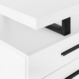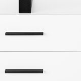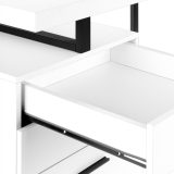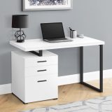 Introducing the ultimate home office essential – this 48″L computer desk with a white laminate finish and reversible configuration. This sleek and fashionable style desk is durably designed with a sturdy U-shaped black metal leg, a spacious and easy to clean top and finished on all sides, perfect for any modern and functional workspace. With the flexibility of a left or right setup to fit your needs, this space saving desk is ideal whether you use it for study, writing, or working on your laptop. Stay organized with closed storage drawers and a convenient file drawer with hanging bars for all your essentials. This contemporary desk is easy to assemble with illustrated instructions included and comes with a 5 year limited warranty for peace of mind.