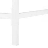 Metal base in a white finish provides stability and includes slender metal legs that are recessed under the rectangular desktop