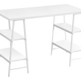 Make your computer desk work as hard as you do. This desk delivers style and functionality from top to bottom, starting with its thick and spacious desktop in a smooth, white finish. Sawhorse-style legs in white metal are put to work as supports for 4 open shelves that can be used to display books, small storage boxes, or other items. The unique, compact design of this industrial-style writing desk maximizes space and storage potential so that you can maximize productivity.