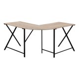 Stylish simplicity is just around the corner with this two tone 55″l computer desk. Finished in a wood-look brown laminate, the large L shape desktop features a rounded corner panel and offers space to accommodate a laptop, study books, or writing materials on the easy to clean top. Supporting the desktop is a slender black metal base with sturdy, X-shaped side legs. The open design of the metal base leaves plenty of room underneath the desktop to stretch your legs and place a computer tower. Durably designed, this contemporary corner desk includes a 5 year limited warranty against any defects for a hassle-free purchase. Easy to assemble with full illustrated instructions included, create a functional workspace with this fashionable style L-shaped computer desk for your modern home office.
