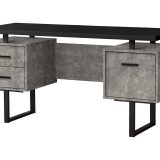 Create a functional workspace with fashionable style in your home office when you sit down to work at this contemporary 60″L computer desk with closed storage. The thick-panel easy to clean top provides generous room for a laptop, study and writing materials, and allows you to use the tops of the drawer units as extra surfaces. Finished on all sides in a black and grey concrete laminate, this desk offers 2 storage drawers on top for office essentials, and a bottom file drawer that includes metal bars for hanging standard or legal sized files. For flexibility, the drawer units have a reversible configuration and can be installed with a left or right setup according to your preference. Durably designed with a supporting sleek black metal base in a modern U shape. Easy to assemble with full illustrated instructions included, this modern desk comes with a 5 year limited warranty against any defects for your comfort.