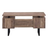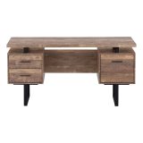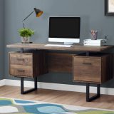 Create a functional workspace with fashionable style in your home office when you sit down to work at this contemporary 60″L computer desk with closed storage. The thick-panel easy to clean top provides generous room for a laptop, study and writing materials, and allows you to use the tops of the drawer units as extra surfaces. Finished on all sides in a warm reclaimed wood-look brown laminate, this desk offers 2 storage drawers on top for office essentials, and a bottom file drawer that includes metal bars for hanging standard or legal sized files. For flexibility, the drawer units have a reversible configuration and can be installed with a left or right setup according to your preference. Durably designed with a supporting sleek black metal base in a modern U shape. Easy to assemble with full illustrated instructions included, this modern desk comes with a 5 year limited warranty against any defects for your comfort.