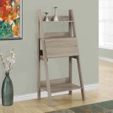 Elevate your home office with this trendy 61″H ladder style computer desk in a smooth wood-look taupe brown laminate finish. With a sleek and fashionable style, this versatile ladder desk is not only a functional workspace but also a contemporary statement piece for your workspace. Durably designed and finished on all sides securely leaning against a wall, this handy closed storage area opens up to a desktop, perfect for studying, writing, or using your laptop. The large open bottom shelf and top fixed shelves can be used to place a few books, office accessories, or showcase decorative items. Plus, the easy to clean top ensures that your desk always looks its best. Easy to assemble with illustrated instructions included and backed by a 5 year limited warranty against defects, this computer desk is a must-have for the modern home office.
