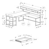 Assembly required: Illustrated instructions and all hardware are provided for convenience (additional tools may be needed); this corner desk measures 59 inches L x 59 inches W x 47.25 inches H