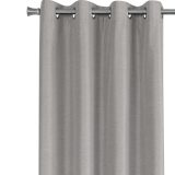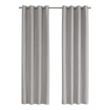 Give your space a luxurious look with this set of two blackout curtain panels in a chic silver finish. Each 52″W x 84″H unlined curtain panel is embedded with solid blackout material that blocks out the light when needed, and provides thermal insulation from the heat and cold. The sumptuous, wrinkle free soft polyester fabric give an air of elegance to a room, and the 8 silver metal grommets on each panel makes it a quick setup. The simple classic design of these curtains are versatile enough to hang in a living room, bedroom, or dining room. Panels are dry clean only. Curtain rod not included and must be purchased separately.