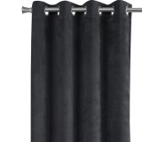 Bring a subtle luxe look to a room with this set of two room darkening curtain panels in a soft velvet finish that is machine washable. Each 52″W x 95″H curtain panel is made with room-darkening material to help filter out the light, giving a cozy ambiance to a space. The 8 silver metal grommets on each panel makes it a quick setup and the simple, elegant lines of these extra-long grey curtains are versatile enough to hang in a livingroom, bedroom, or dining room. Curtain rod not included and must be purchased separately.