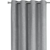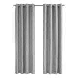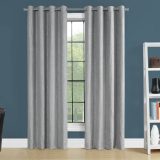 Opt for a casual elegant look in a room with this set of 2 room darkening curtain panels. Each 52″W x 95″H unlined panel is finished in a soft micro-suede silver with a wrinkled look for added texture. The machine washable room darkening polyester fabric provides privacy and filters out the light for a peaceful ambience. The 8 silver metal grommets on each panel allows for a quick setup and the simple, extra-long length make these curtains versatile enough to hang in a livingroom, bedroom, or dining room. Curtain rod not included and must be purchased separately.