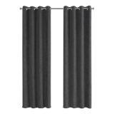 Add an elegant finishing touch to a room with this set of two room darkening curtain panels in a soft micro-suede finish that is machine washable. Each 54″W x 84″H curtain panel incorporates room-darkening material to help block out the light, giving a quiet peaceful retreat to a room. The 8 silver metal grommets on each panel make it a quick setup, and the simple straight classic lines of these grey curtains are versatile enough to hang in a living room, bedroom, or dining room. Curtain rod not included and must be purchased separately.