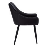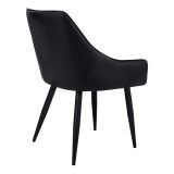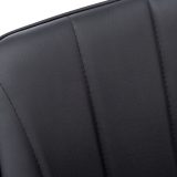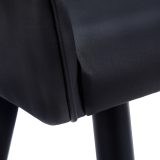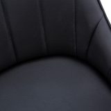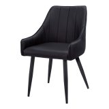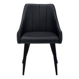 You’ll want to remain seated at the table in these supremely comfortable upholstered dining chairs in a black leather-look fabric. With vertical channel tufting for a luxurious feel, the padded back and sides curve around the seat and slope down to form low, integrated armrests. The cushioned seat is deep and generously padded for ultimate support. Angled and tapered black metal legs add a modern look. Sold as a 2-piece set, these stylish chairs are ideal for an eat-in kitchen or formal dining room, or as accent chairs in other rooms.