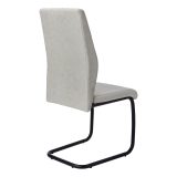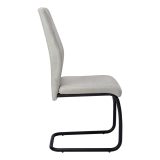 Supported by a solid U-shaped black metal base, these kitchen chairs are upholstered in a grey faux-suede fabric with two vertical rows of stitching for added elegance