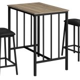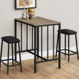 Elevate your dining experience with this trendy 3-piece counter height dining set! Made for casual family dining, this contemporary and fashionable style bistro set has a two-tone finish with a wood-look, taupe brown laminate 36″ rectangular table top and black metal legs. The black fabric cushioned seats provide ultimate comfort while the sturdy construction ensures durability for years to come. Perfect for small spaces, this 3-piece set is easy to assemble with full illustrated instructions included. Daily maintenance is convenient with an easy to clean top, making it a practical solution for any kitchen or dining space. Backed by a 2 year limited warranty for your peace of mind, this 3pcs set is a must-have if you are looking for a space saving design to upgrade your home.