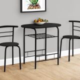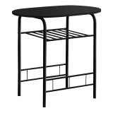 Create a compelling and cohesive aesthetic in your space with this three-piece dining set, which includes one table and two chairs. Perched atop curved metal legs, the oval table is crafted from manufactured wood, while the two chairs feature a ladderback design with tubular metal detailing. Stylishly finished in a modern black laminate seat and table top combined with black metal, this set blends with a variety of color schemes.