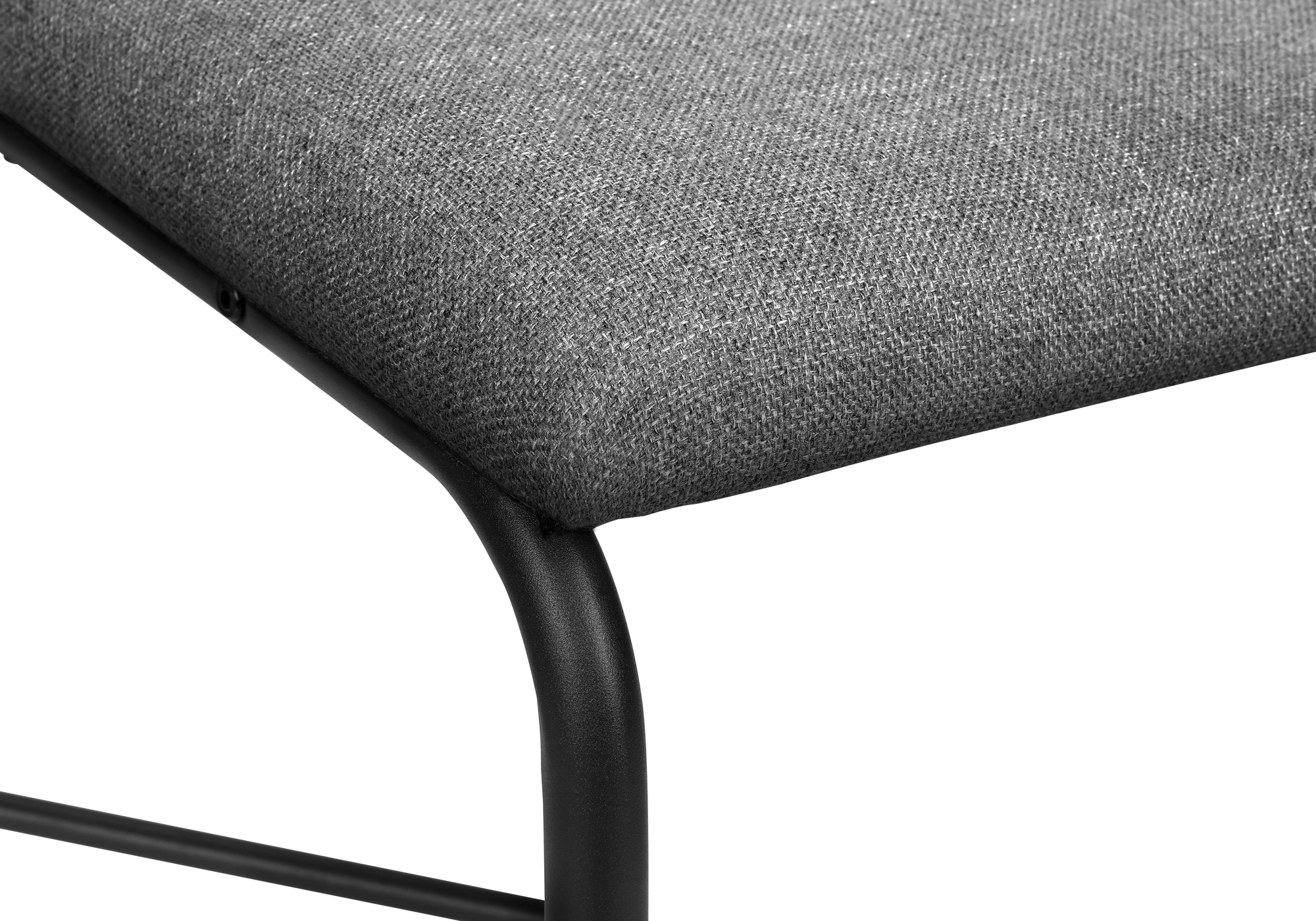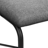 The 4 armless chairs are upholstered in thick, grey cotton and linen mix fabric, with sturdy black metal construction complimenting the elegant table.