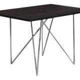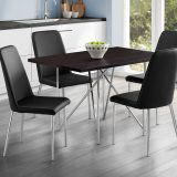 Smaller in size, big in functionality and versatility. This wood-look finished dining table fits perfectly in small homes, apartments or condos and comfortably accommodates up to 4 people. Trestle style chrome metal legs support the beautiful dark brown, espresso color tabletop easily. This dining table works great in an office space as well, if you so choose! Chairs are sold separately.