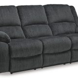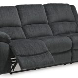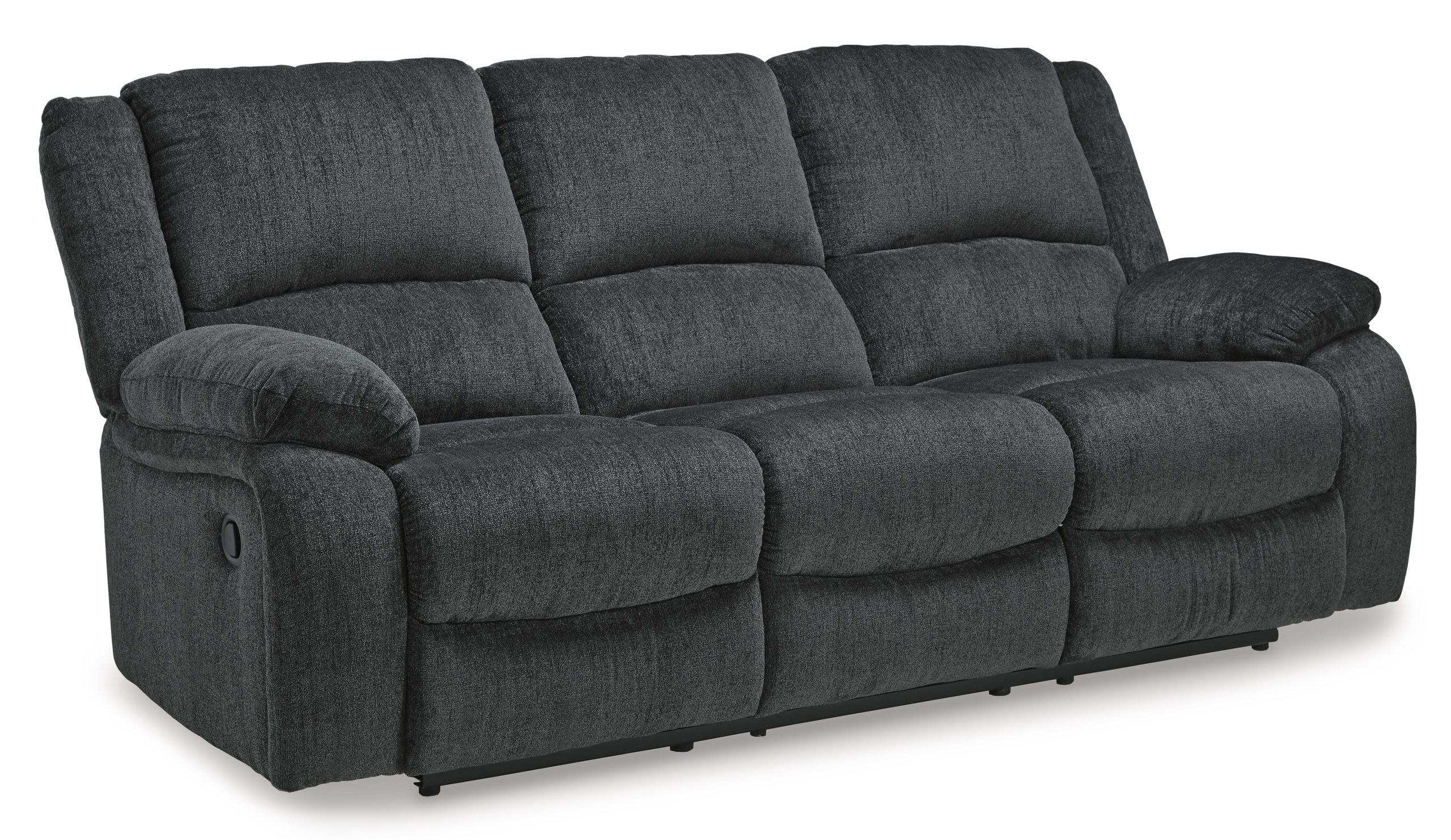 For those who love the cool look of leather but long for the warm feel of fabric, this reclining sofa delivers both with ease. Its high-performance padded faux leather is remarkably durable and easy to clean, making it just the thing for family spaces. Channel-stitched back cushions provide indulgent lumbar support for maximum comfort—not to mention fashion-forward flair.