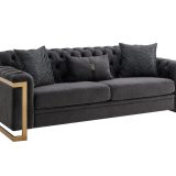 Add a touch of regal elegance to your home with the Georgiana Series 3-Piece Living Room Set. This collection comprising a sofa, loveseat, and armchair masterfully combines classic Chesterfield-inspired tufting with sleek, ultra-modern gold metal architecture. It is the definitive choice for homeowners looking to achieve a “Modern Glam” or “High-Fashion” interior.