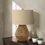 Looking for a stylish lighting solution that will brighten up your living room, bedroom, office, and other spaces? Look no further than this 22″h table lamp with a casual boho vibe. The airy textured base is made from durable brown linen rope topped with a drum shaped beige linen shade and finished with a round wood finial. With a transitional design, this is the perfect sized lamp to place on an end or side table, or on a nightstand. It offers versatile illumination thanks to a 3-way switch that holds a single bulb (not included) for a maximum outage of 100W/120V, allowing you adjust the lighting ambiance in a living room, home office, or bedroom. Made with natural quality materials ensuring longevity, this lamp includes a 2 year limited warranty against any manufacturer’s defects for a worry-free purchase.