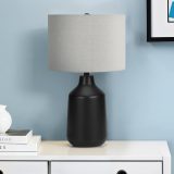 This vintage inspired, contemporary 24″h table lamp is the perfect way to bring a stylish and fashionable accent to any office, living room, or bedroom. The smooth, black concrete base is complimented by the grey fabric shade, and finished with a round black finial on top. This versatile lamp easily illuminates a side or end table, a nightstand or bedside table with just the flick of a 3-way switch that holds a single bulb (not included) for a maximum output of 100W/120V, allowing you to adjust the brightness level. Made with durable quality materials ensuring longevity, this lamp includes a 2 year limited warranty against any manufacturer’s defects for a worry-free purchase.