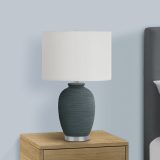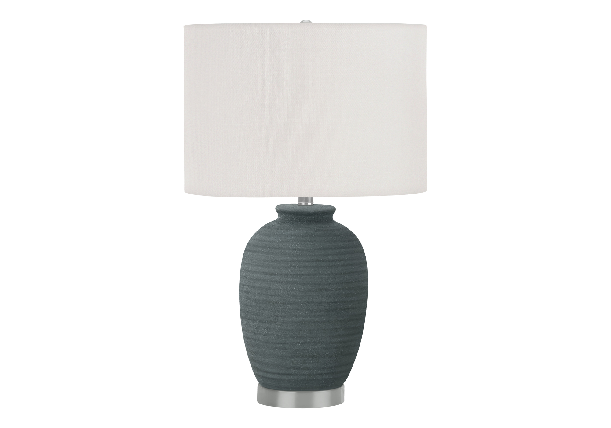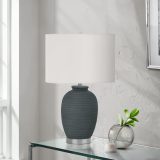 This fashionably versatile 24″h table lamp is the perfect way to brighten up any room in your home or office! With its contemporary design in a blue ceramic textured base atop a silver metal foot and a cream fabric drum shade, finished with a round silver finial on top, this stylish lamp adds flair to an end or side table, nightstand, or bedside table. Featuring a 3-way switch housing a single bulb with a maximum output of 100W/120V (not included), this ceramic accent lamp will illuminate any space in your living room, bedroom, or office. Made with durable quality materials ensuring longevity, this lamp includes a 2 year limited warranty against any manufacturer’s defects for a worry-free purchase.
