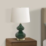Time to refresh your decor, starting with this stylish and fashionable 24″h table lamp in a captivating double-gourd green glass and silver metal base with an elegant ivory shade and a round silver finial on top. The perfect accent piece to brighten up any room, this decorative lamp is sure to create a warm and inviting ambiance. Whether placed on an end or side table, nightstand, or bedside table, this lamp will illuminate your space with a soft and soothing glow. This lamp is fitted with a rotary 3-way switch for adjustable lighting for a tri-bulb up to 100W (not included) and is not only functional but also adds a touch of glamour to your decor. Quick and easy to assemble and made with high quality materials, this table lamp with the cone fabric shade includes a 2 year limited warranty for your peace of mind. Light up your office, living room, or bedroom in style with this must-have contemporary accent lighting.