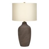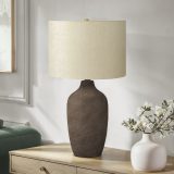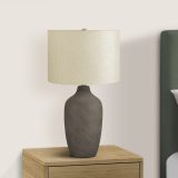 Bring some contemporary sophistication to any room with this stylish 27″h table lamp. A beautiful blend of a textured grey ceramic vase shaped base and beige linen shade, finished with a gold finial on top, this lamp is a great way to brighten any bedroom, living room or office. With a 3-way switch that houses a single bulb (not included) for a maximum output of 100W/120V, this lamp offers three levels of illuminating light for creating the ambiance you desire. Attached with a 5ft transparent cord, this is the perfect functional accent to place on an end or side table, nightstand or bedside table. Made with quality materials, this lamp includes a 2 year limited warranty against any manufacturer’s defects for a worry-free purchase.