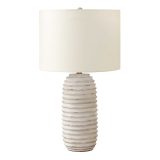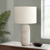 Add fashionable style and function, this 28″h transitional style table lamp is the perfect accent to brighten up your living room, bedroom, or home office area. With a textured finish, the cream resin base with ridges all around the elongated beehive structure is complimented with a chic ivory linen fabric shade and finished with a grey wooden finial on top. Featuring a 3-way switch holding a single bulb (not included) with a maximum outage of 100W/120V, allows you to customize the ambiance in a space. Place this versatile lamp on a side or end table, or on your nightstand to create a warm and inviting atmosphere. Made with durable quality materials ensuring longevity, this lamp includes a 2 year limited warranty against any manufacturer’s defects for a worry-free purchase.