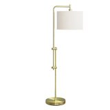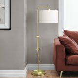 Step into the spotlight with our 63″h arc floor lamp in sleek brass metal with a chic ivory drum shade. This contemporary piece is the perfect way to brighten up a living room, bedroom, or office to create a warm ambiance. The convenient on/off foot switch attached to an unobtrusive 6ft clear cord makes it easy to illuminate and brighten your space in style. Quick and easy to assemble out of the box, this decorative accent lamp is made with high quality materials and includes a 2 year limited warranty against any defects. Add this classically modern arc lamp to your home and instantly elevate your decor!