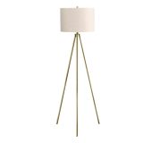 Illuminate your space with the perfect combination of classic style and contemporary flair with this 63″h floor lamp! The simple tripod design keeps the lamp stable while the brass metal base and ivory linen drum shade ensure a timeless, elegant look. The 3-way switch holds a single bulb (not included) for a maximum output of 100W/120V, allowing you to adjust the amount of light needed to create an intimate atmosphere or brighten up a dark room. With a 6ft clear cord discreetly attached to one of the legs at the bottom, place this versatile lamp next to a sofa or armchair in a livingroom or office, or bring it into your bedroom for a practical lighting option. Made with durable quality materials ensuring longevity, this lamp includes a 2 year limited warranty against any manufacturer’s defects for a worry-free purchase.