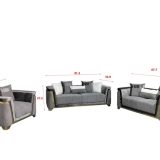 Elevate your home’s aesthetic with the Stationary Sofa Set. This collection is expertly upholstered in a sophisticated, multi-tonal taupe velvet that features a unique textured pattern on the exterior panels and seat bases. Each piece is defined by striking gold-finished metal trim that wraps around the arms and follows the sleek silhouette of the base. Combining a warm, neutral palette with bold metallic highlights, this set offers a perfect balance of contemporary glam and cozy luxury.