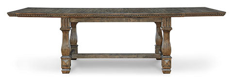 Curate a vintage-inspired retreat from the modern world. This dining extension table is draped in a dreamy finish amidst traditional styling. Details such as thick profiled base mouldings, fluted pilasters and inset dentil trim provide a picturesque finishing touch.