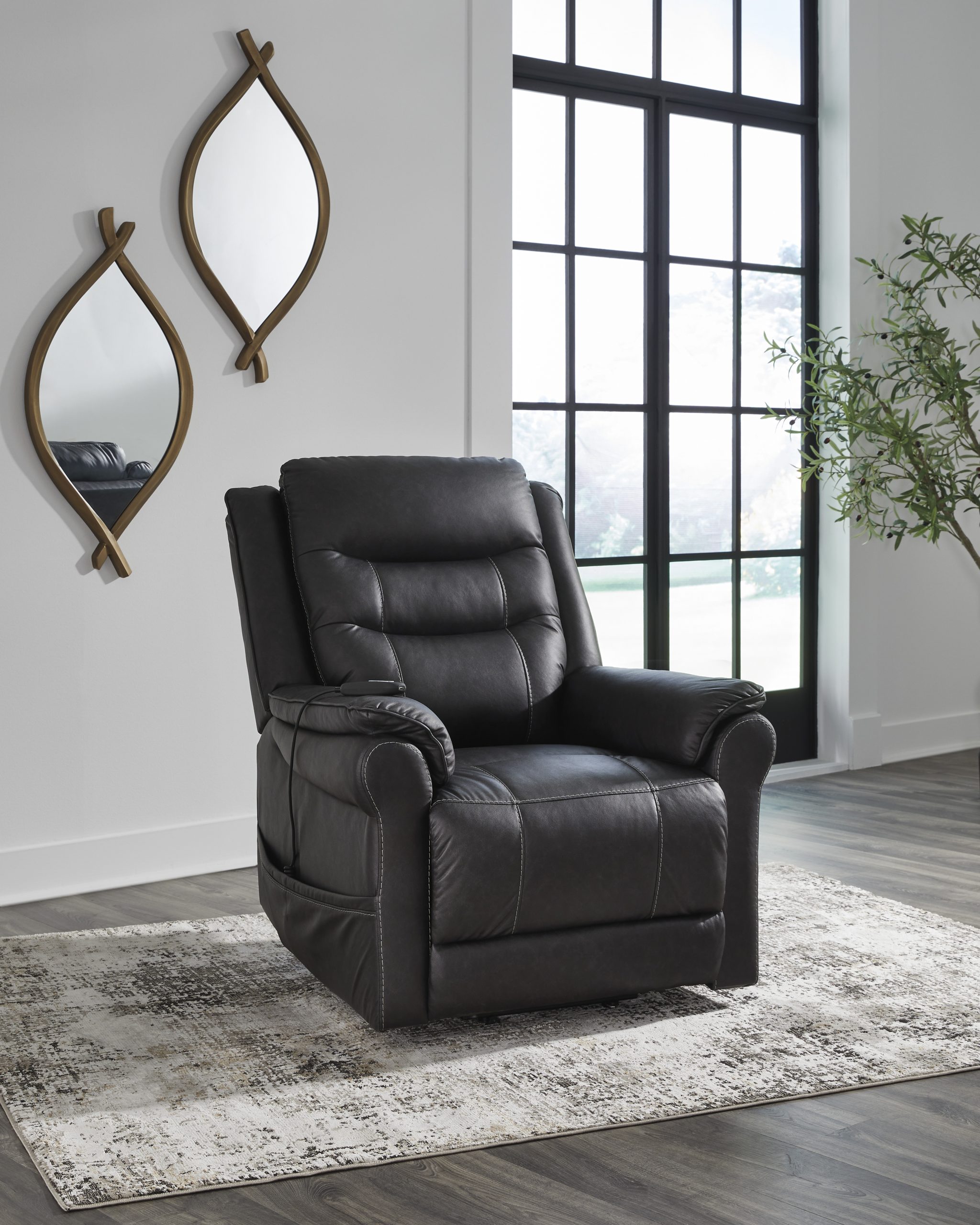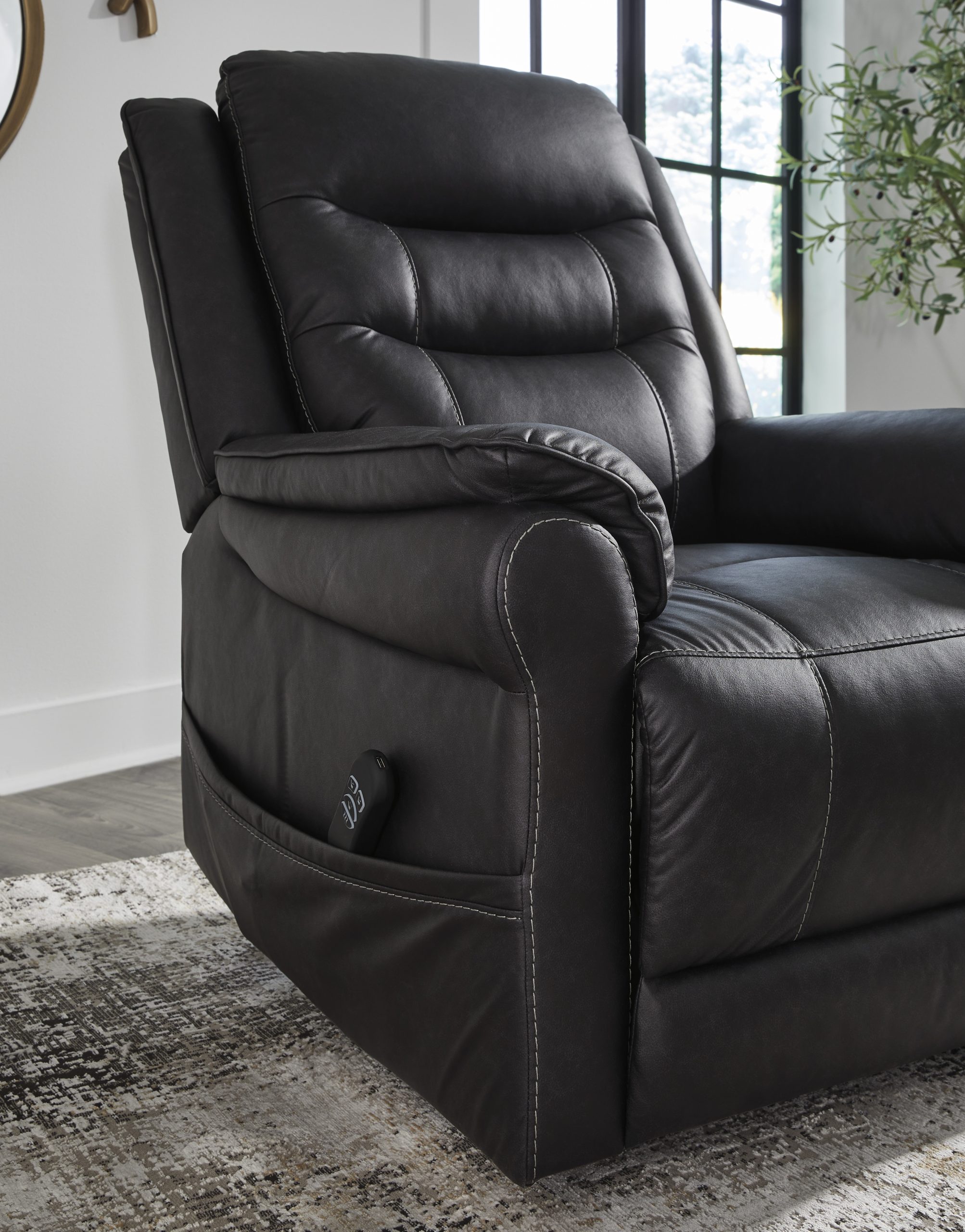 This power lift recliner is made for comfort and priced to put you at ease. Its supple faux leather invites you to sink in and stay a while, and the stitching details add a tailored, contemporary look. With a lift-and-tilt motion that brings you to your feet, plus heat and massage features, this recliner is crafted for affordable, everyday function.