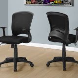 This mid-back office chair has curves in all the right places to provide comfortable support. The wide backrest has an ergonomic shape that follows the contour of the spine to promote good posture. The fixed armrests in black are grooved with a concave shape to better support the lower arms. Black mesh fabric covers the backrest and padded seat, which is wide and extra deep to offer a roomy feel. A lever underneath the seat allows you to adjust the chair height and tilt function to your preference. The seat swivels 360 degrees and the black 5-star base with casters lets you easily move around your workspace. With its streamlined style, this desk chair is ideal for a smaller home office.