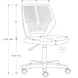 Sized especially for kids, this small desk chair will provide your child with a supportive, comfortable place to sit when they work and play. It features an ergonomically designed, extra-wide backrest that curves to promote good posture and a padded seat with a soft feel. A convenient lever underneath the seat allows the chair to be adjusted to the best height for your child’s size. A swivel seat and a stable, 5-star base with casters that roll smoothly in all directions make moving the chair easy and fun! You and your child will give this juvenile, armless office chair good grades for its support, comfort, and functionality.