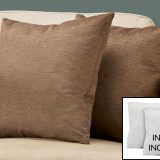 Add a modern and luxurious element to your décor with this set of 2 square accent pillows in a mosaic velvet finish. The rich light brown color on both sides gives a dramatic flair to a favorite chair, sofa, bed, or entryway bench. Made from a soft lustrous polyester fabric that is machine washable and the convenient side zipper allows for easy removal of the poly fill inserts. These lush velvet throw pillows are the perfect finishing touch in a room!