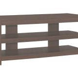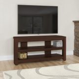 Enhance the look of your contemporary living space with this corner concept tv stand. Constructed with thick panels in a sophisticated cherry finish, this tv stand can be used against any wall or will perfectly fit into a corner as a great space saving solution. With two fixed open concept shelves ideal for your media storage needs, this tv stand is a must have for any home. Accommodates all TV sizes with a center stand.