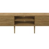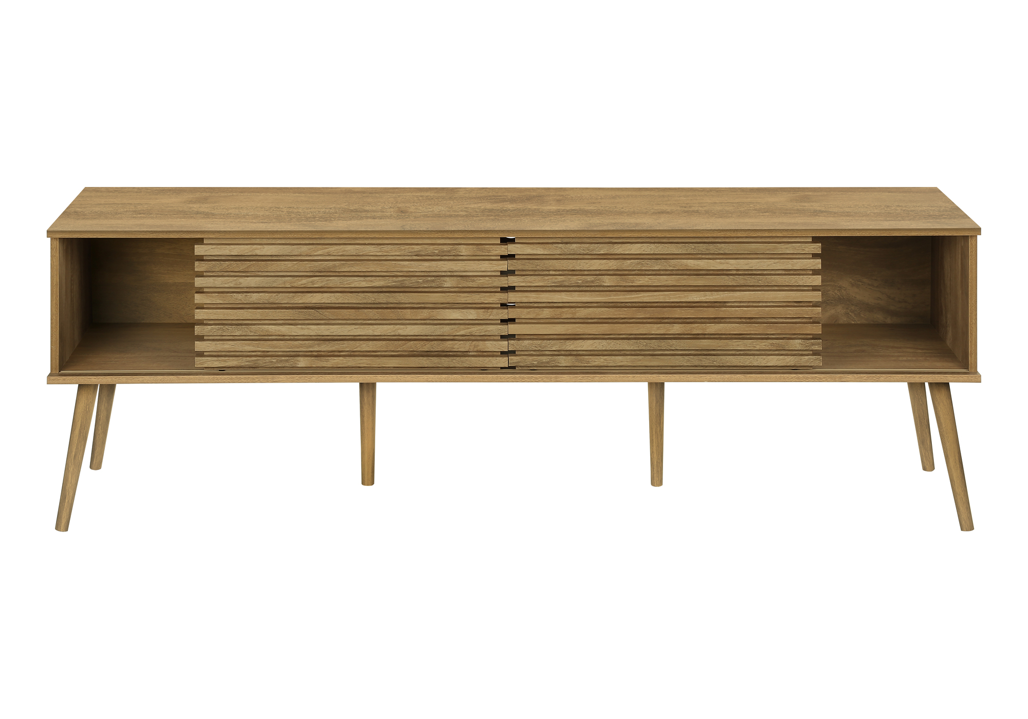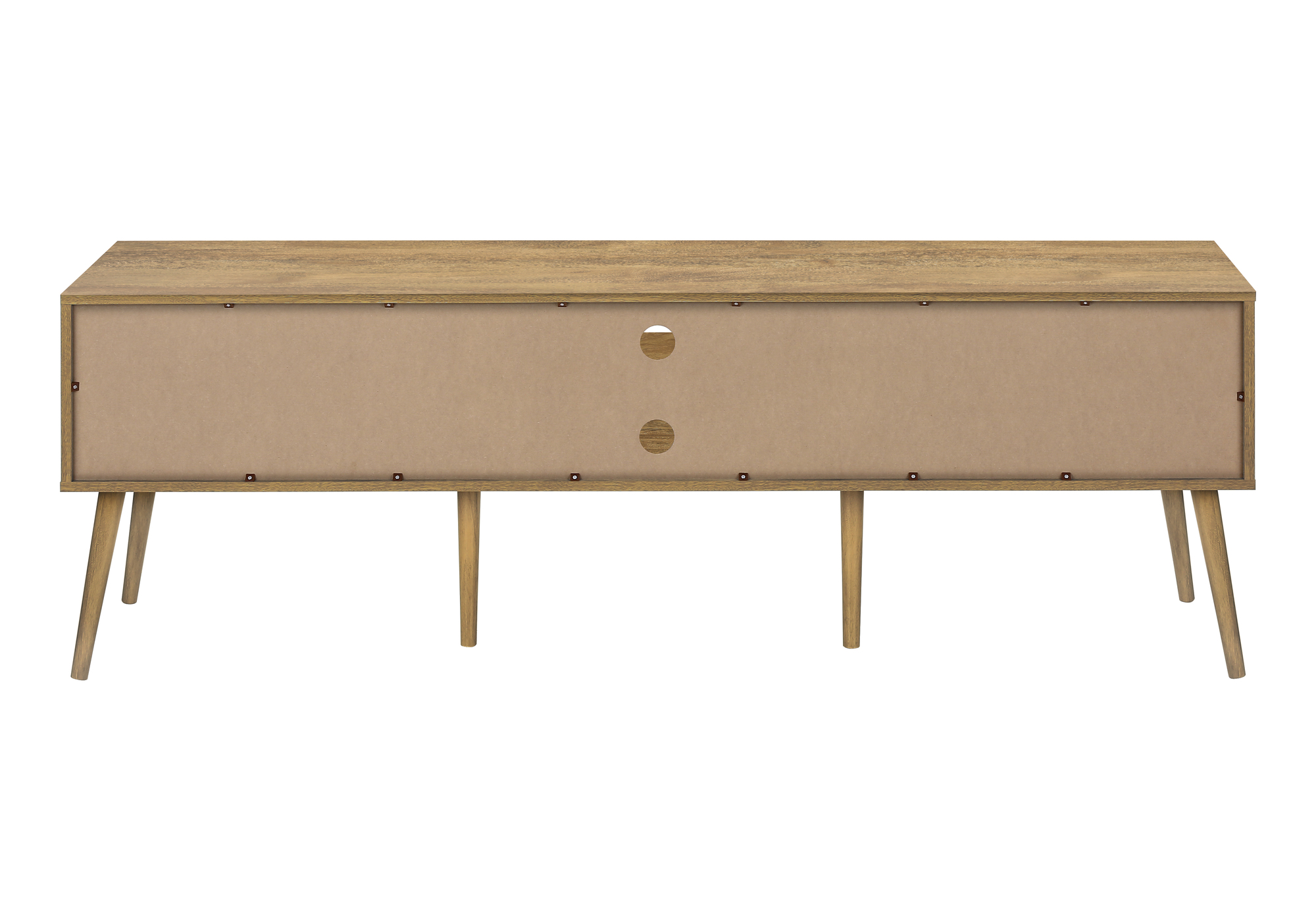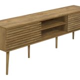 Backed by a 5 year limited warranty, this retro style media entertainment center offers both closed and open storage options for an all in one entertainment solution; product dimensions: 71 in. L x 15.5 in. D x 23.75 in. H