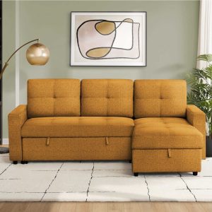 Lumos Sofa Bed Pull Out Reversible Sleeper Sofa Sectional With Storage In Orange